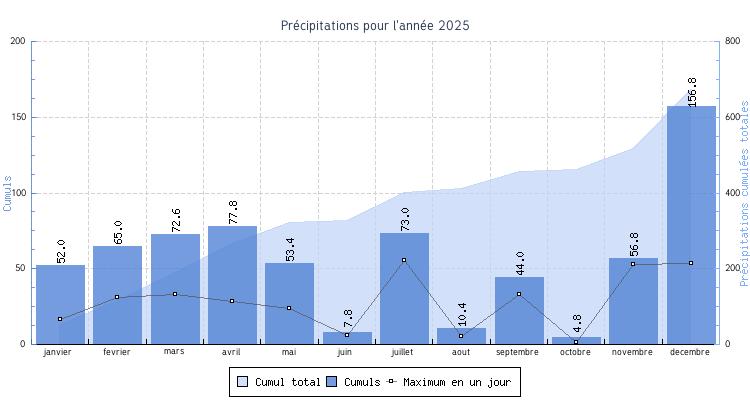 | decembre | 0.4 °C | 7.0 °C | 20.3 °C | 14.7 °C | 11.1 °C | 2.2 km/h | 38.6 km/h | NNE |