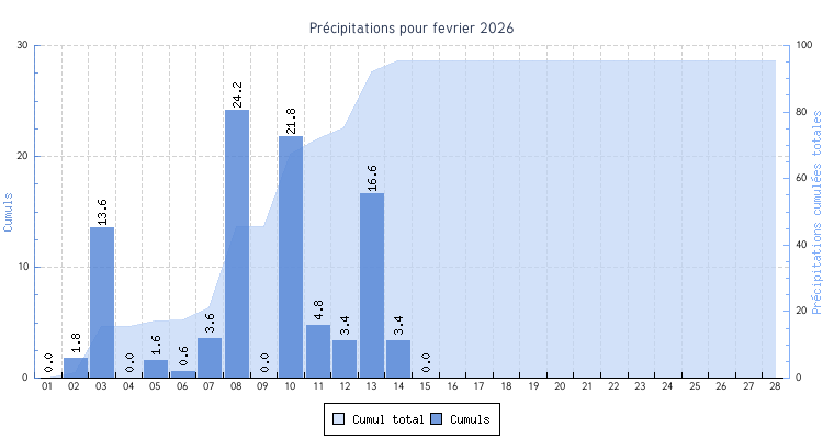 | Total | 2.2 °C | 19.1 °C | 9.8 °C | 3.6 km/h (54.7 km/h) | N |