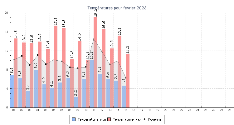 | 01 | 6.9 °C | 14.6 °C | 10.1 °C | 1.9 km/h (20.9 km/h) | O |