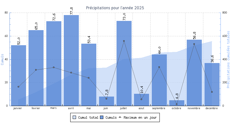 | avril | 2.8 °C | 9.1 °C | 26.8 °C | 20.5 °C | 14.8 °C | 3.1 km/h | 37.0 km/h | NNE |