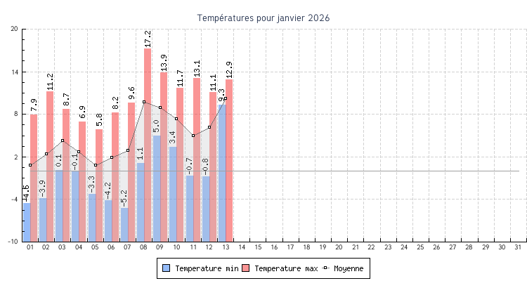 | 05 | -3.3 °C | 5.8 °C | 0.8 °C | 2.0 km/h (19.3 km/h) | NO |