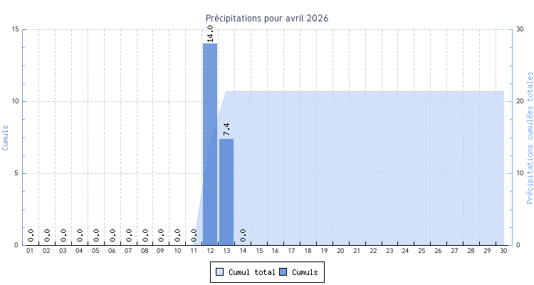 | 04 | 11.1 °C | 26.7 °C | 17.6 °C | 2.8 km/h (19.3 km/h) | NO |