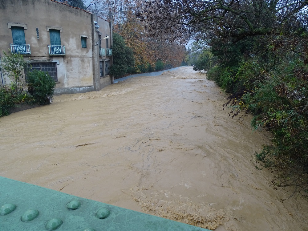 | crue de novembre 2014 :la Lène vue du pont | vue de l'autre côté | véhicule piégé | gué submergé |